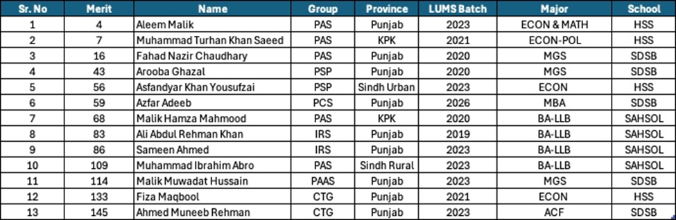 Over the years, LUMS alumni have gone on to serve in key administrative and policy-making roles, shaping progress and driving meaningful change across Pakistan. This year’s qualifiers carry that legacy forward, representing the values of integrity, service, and impact.