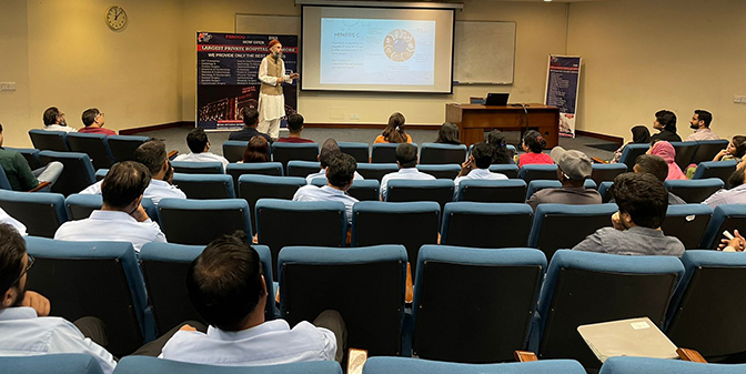 The session commenced with opening remarks by Mr. Tariq Sheikh, Director Campus Health, who shared the LUMS' vision for initiating health programmes in the upcoming year. Guest speaker, Dr. Muhammad Asif Gul, gastroenterologist and hepatologist from Farooq Hospital, delivered a comprehensive overview of the different types of hepatitis, emphasising the paramount importance of vaccination as a preventive measure. He presented compelling statistics, revealing that a staggering 4.55 million individuals suffer from Hepatitis B Virus (HBV) and an alarming 8.74 million from Hepatitis C Virus (HCV) in Pakistan.