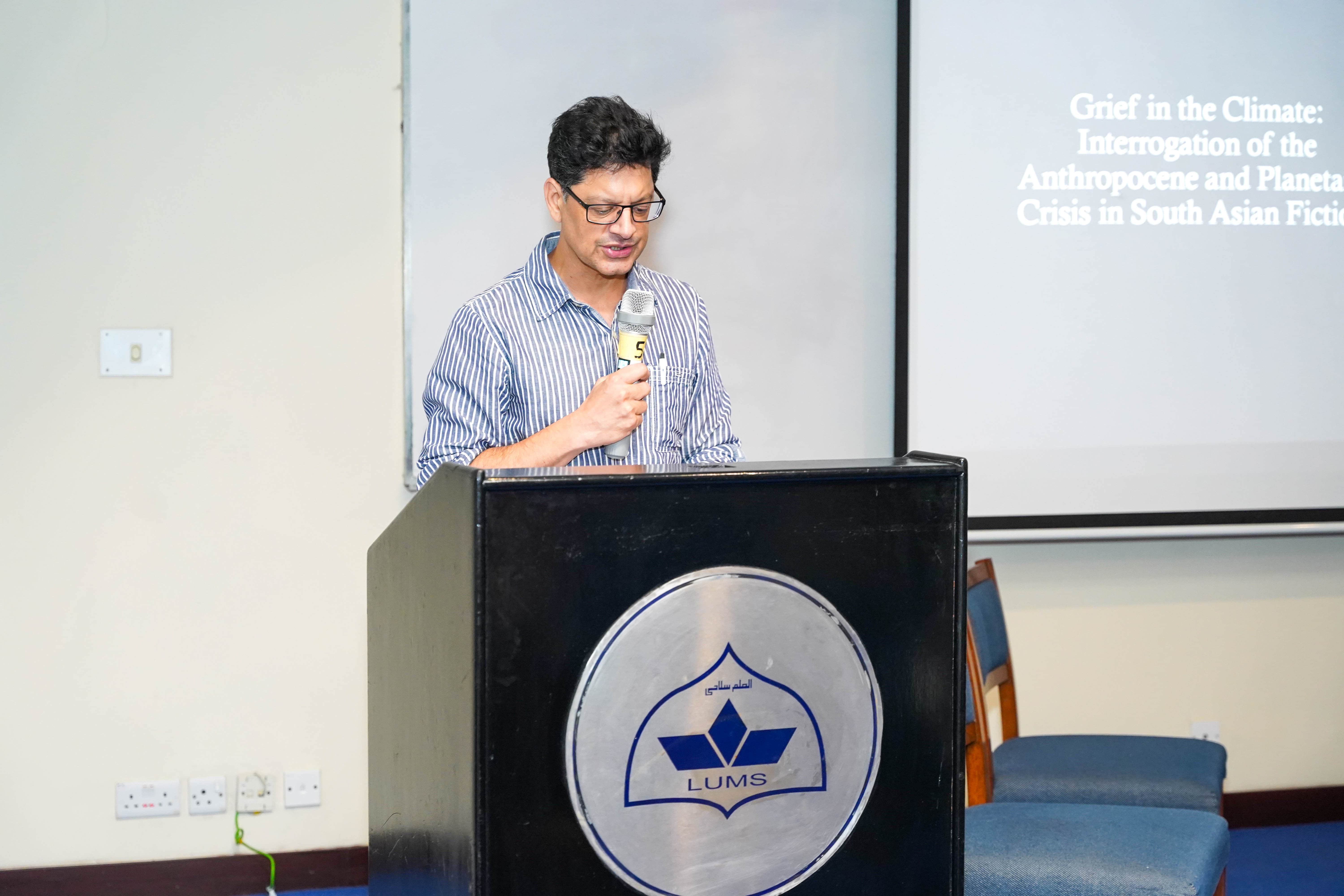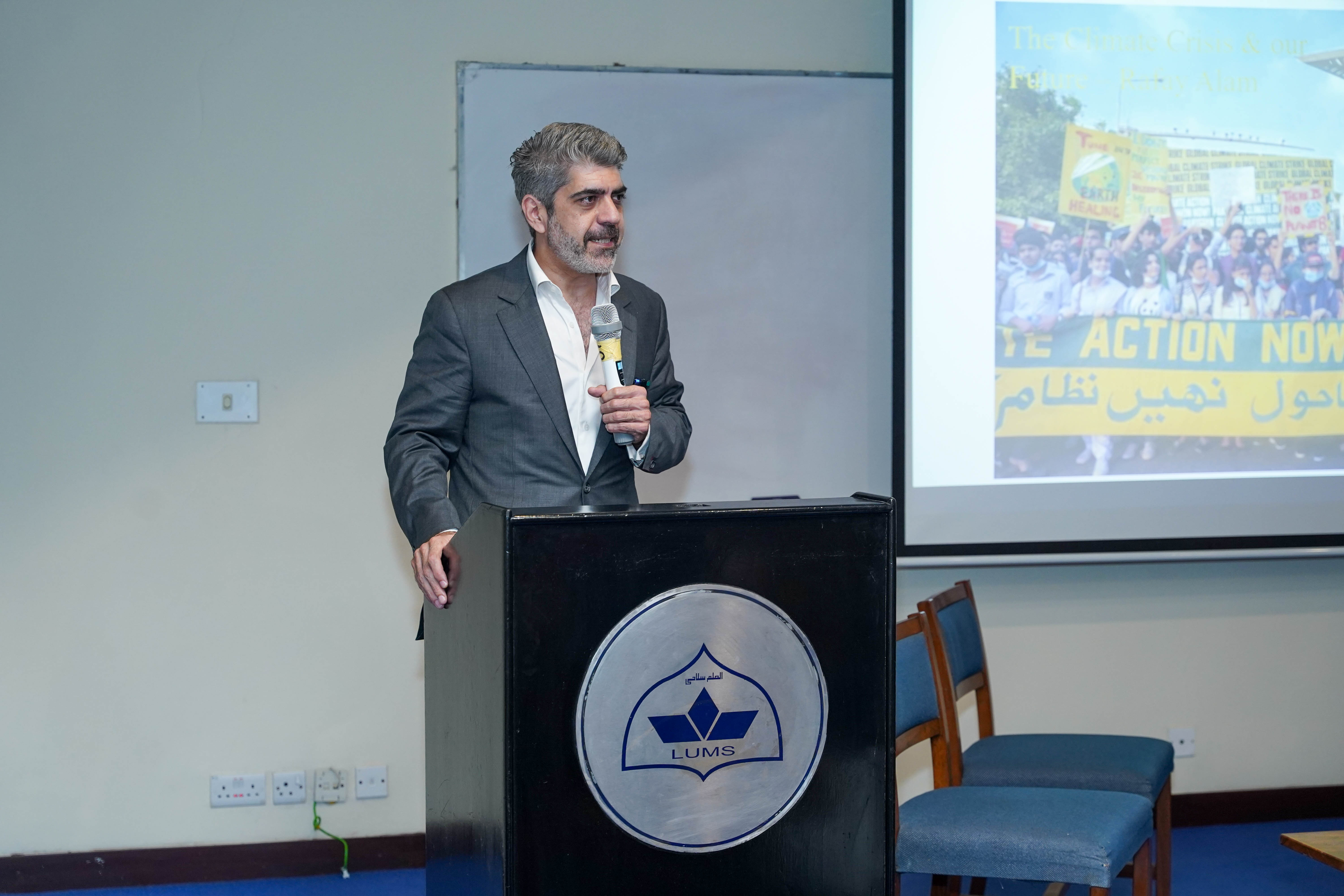 Dr. Ali Khan, Dean of MGSHSS, and Associate Professor of Anthropology, LUMS, delivered the session's opening remarks. Welcoming the audience to the event, he expressed gratitude on behalf of the School for the opportunity to host an important dialogue on a theme as pressing as climate. “It has been essential for academics to contribute to public discourse, and the more opportunities that are created for this, the better the mutual benefits for us,” he said.