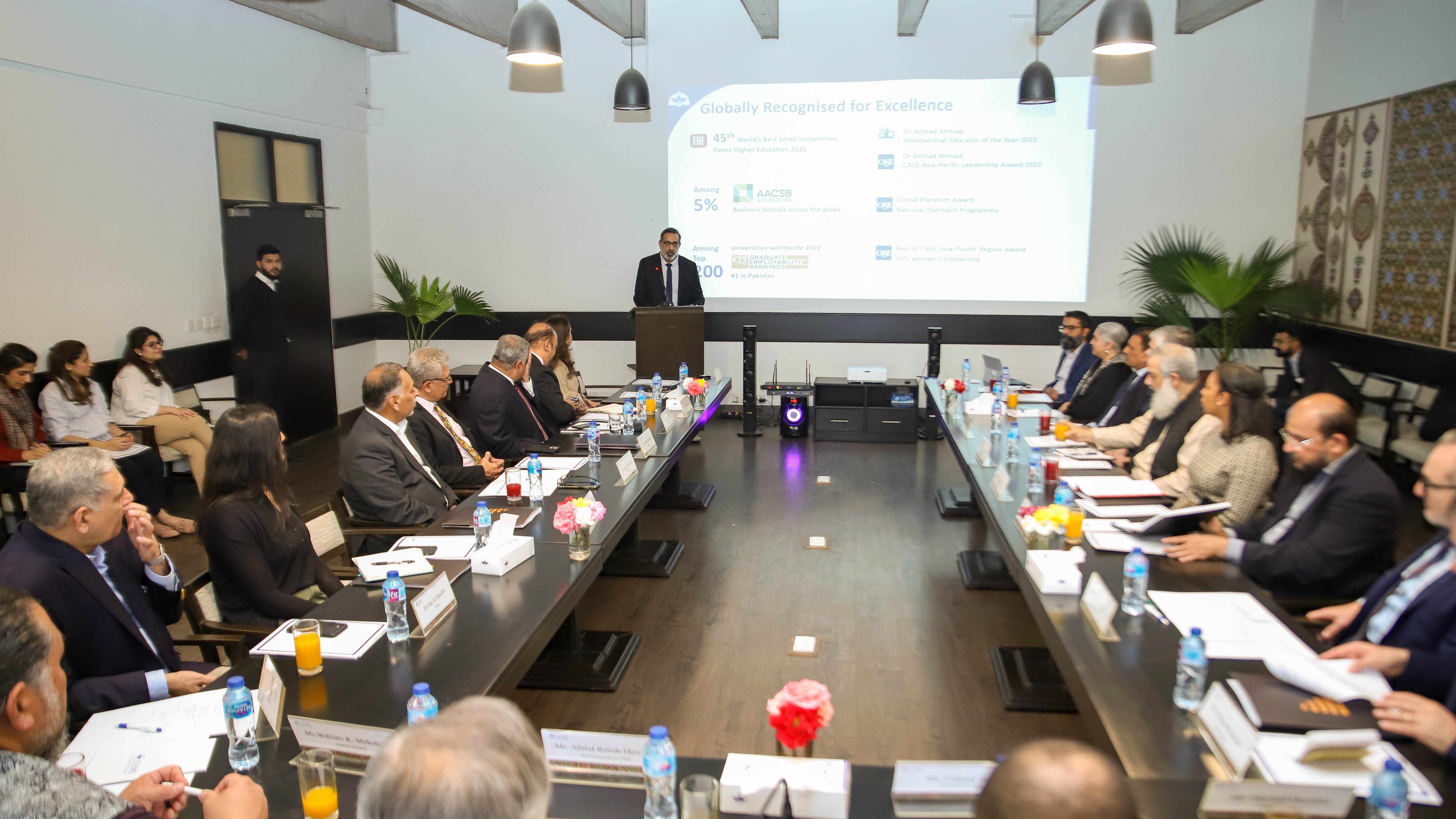 Pro Chancellor, Abdul Razak Dawood; Rector, Shahid Hussain; Vice Chancellor, Dr. Arshad Ahmad, and Vice Provost, Dr. Tariq Jadoon welcomed the delegation. The conversation encompassed a range of topics that were of relevance to both parties; a common thread in the discussion was the evident move towards collaborative efforts in developing sustainable practices, fighting climate change, and supporting Pakistan's socio-economic advancement.